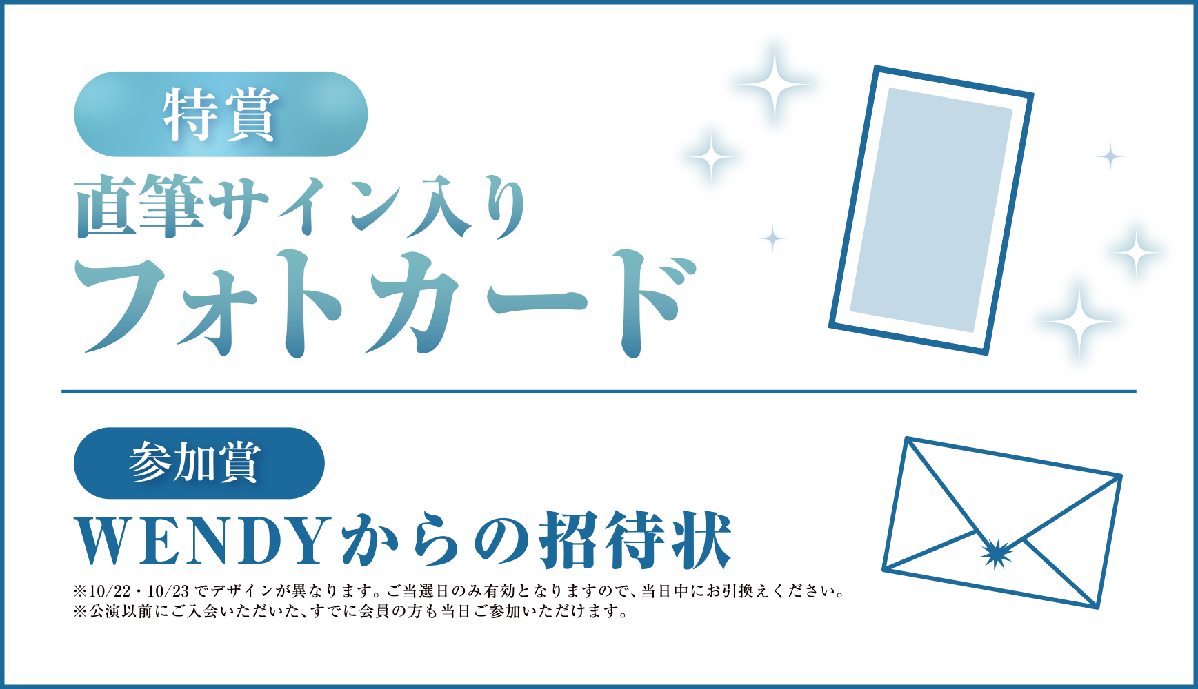 ※参加賞(WENDYからの招待状)は10/22(水)・10/23(木)の2日間で異なるデザインとなります。